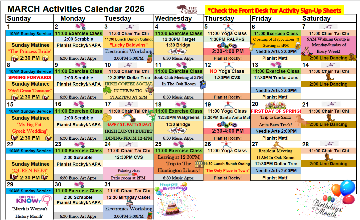 There’s no better way to experience life at The Oaks than by joining us for one of our many April activities. From fitness classes and creative workshops to social gatherings, outings, and seasonal celebrations, we welcome prospective residents to participate and get a feel for our warm, engaging lifestyle.