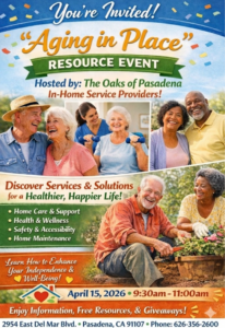 Event Date: April 15, 2026 Time: 9:30–11:00 a.m. Location: The Oaks of Pasadena, 2954 East Del Mar Blvd., Pasadena, CA 91107 RSVP: 626-356-2702 or [email protected]